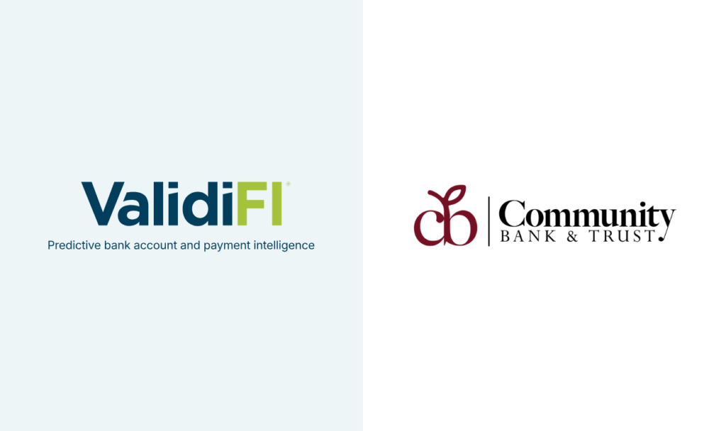 ALPHARETTA, Georgia – Community Bank & Trust, a financial institution that offers a complete line of loans, today announced a partnership with ValidiFI, the leading provider of predictive bank account and payment intelligence, to verify bank account ownership and possession during the loan verification process. Through this partnership, Community Bank & Trust will utilize vAuth […]