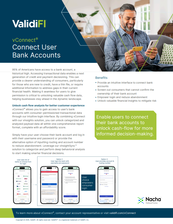 Connect to consumer bank accounts for authenticated bank account validation and gain access to cash flow insights. Allow your customers to connect their bank account their way: